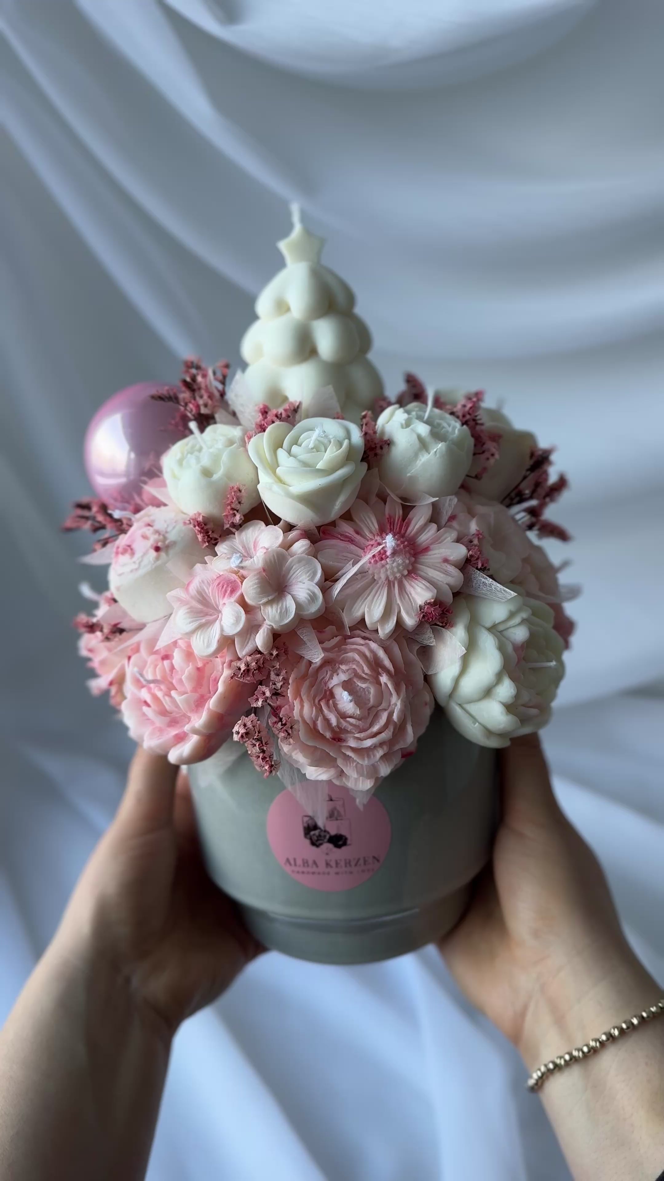Kerzenstrauss weiss/rosa gross